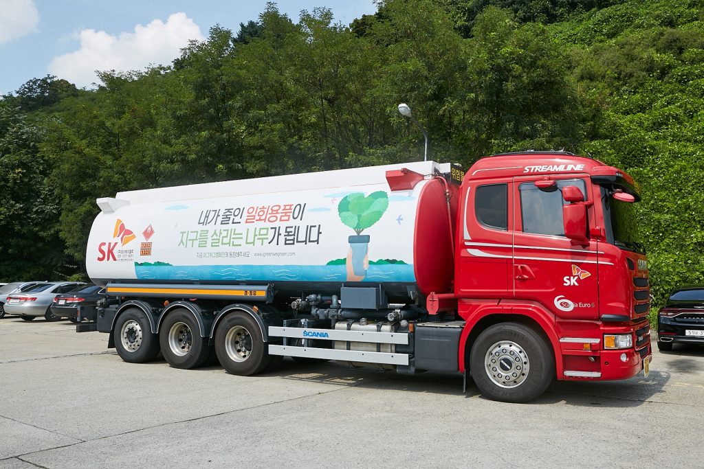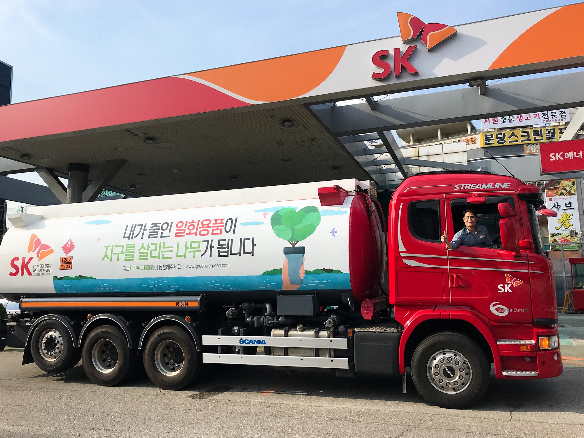 SK에너지는 20일, 전국 SK주유소에 공급할 석유제품을 싣고 전국 도로를 누빌 유조차를 활용해 친환경 캠페인을 벌인다고 밝혔다. 유조차 외관에 “내가 줄인 일회용품이 지구를 살리는 나무가 됩니다”라는 문구를 입혀 도로 위 광고판으로 활용한다는 계획이다.