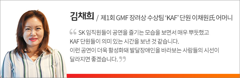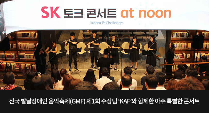 전국 발달장애인 음악 축제(Great Music Festival, 이하 GMF)의 제1회 장려상 수상팀인 ‘KAF(코리아 아트빌리티 플루트 앙상블)’가 8월 27일, 서울 종로구에 위치한 SK 서린사옥에서 SK임직원들을 대상으로 열린 ‘SK 토크 콘서트’에서 초청 공연을 펼친 것이다.