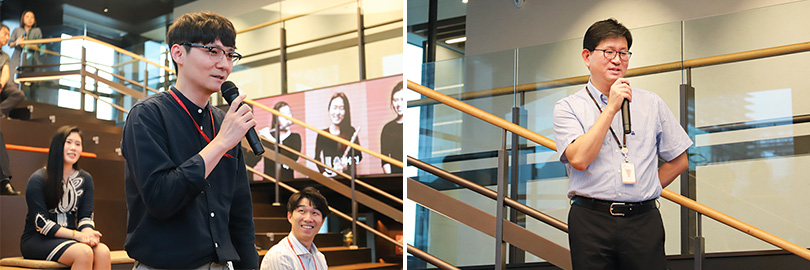 ▲ 본인의 꿈에 대해 이야기하고 있는 SK E&S 여주에너지 도윤보 매니저(좌측)와 SK이노베이션 E&P Tech. Solution 이경진 전문위원(우측)