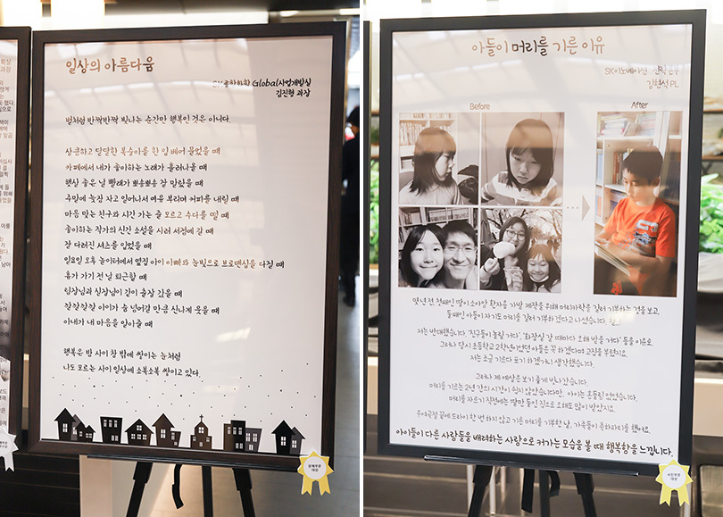 ▲사내 문예∙사진 공모전 ‘作作해요 Season I’ 문예 부문 대상 수상작 ‘일상의 아름다움’(좌)과 사진 부문 대상 수상작 ‘아들이 머리를 기른 이유’(우)