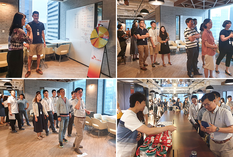 한편, 지난 7월 31일에는 무더운 여름을 함께 즐겁게 보내자는 의미로 SK 서린사옥에서 ‘핫썸머 홀리데이 이벤트’가 진행됐다. 임직원들은 더위로 인한 피로를 잠시 잊고 다트 게임에 참여했으며, 여름에 꼭 필요한 수분크림, 응급상자 등을 경품으로 받아 즐거운 시간을 보냈다.