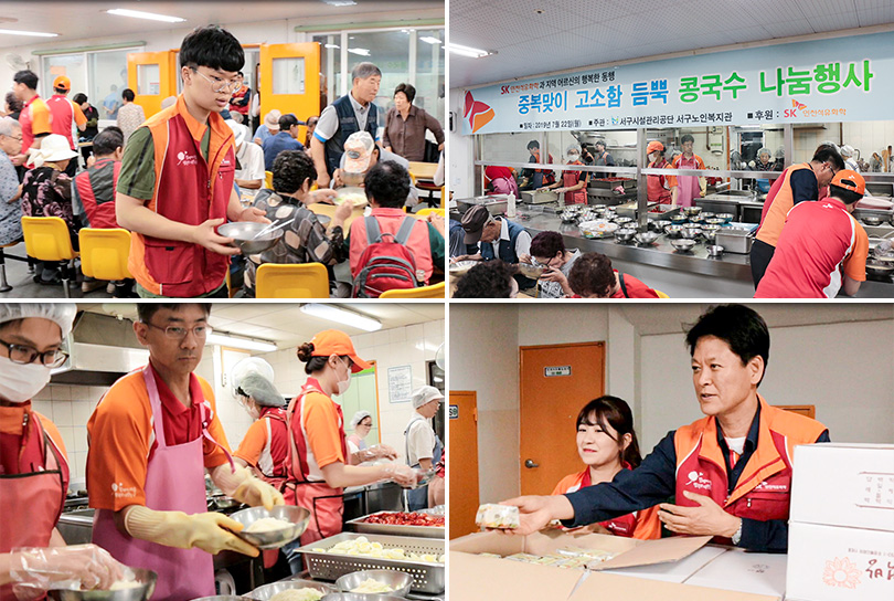 한편, SK인천석유화학은 매해 지역 봉사단체와 협력해 지역 어르신들에게 제철음식을 대접하는 봉사활동을 꾸준히 펼치고 있다. 지난 7월 22일에는 ‘중복’을 맞아 인천 서구노인복지관과 함께 지역 어르신들에게 여름철 대표음식인 ‘콩국수 나눔’ 행사를 진행한 바 있다.