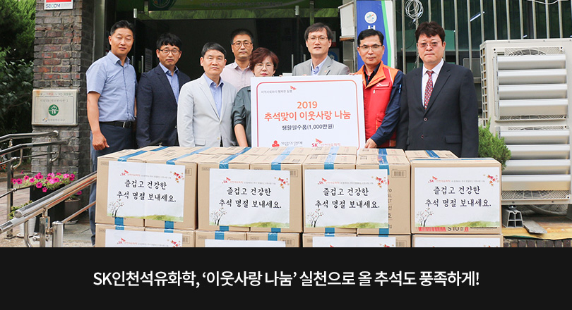 SK이노베이션 자회사 SK인천석유화학이 민족 고유의 명절인 추석을 맞아 지역 내 어려운 이웃을 위한 사랑 나눔을 실천하며 행복한 온기를 전파했다.