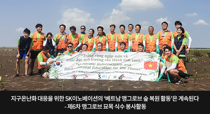 SK이노베이션이 지난 9월 23일부터 26일까지 4일간, 베트남 남부에 위치한 짜빈 성(省)에서 맹그로브 숲 복원을 위한 ‘제6차 맹그로브 묘목 식수 봉사활동’을 펼쳤다.