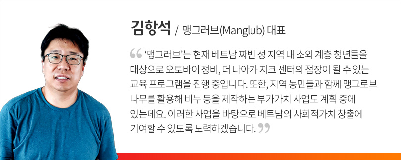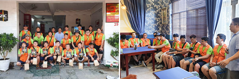 구성원 자원봉사자들은 ‘맹그러브’가 짜빈대학교 인근에서 운영하고 있는 오토바이 경정비 및 윤활유 교환 전문 매장 ‘I’m ZIC’ 1호점을 방문해 매장을 둘러보았다. 또한, ‘맹그러브’의 김항석 대표로부터 맹그로브 연계 사업 등을 들으며 베트남 현지 사회적기업의 사회적가치 창출 활동에 대해 이해하는 시간을 가졌다.