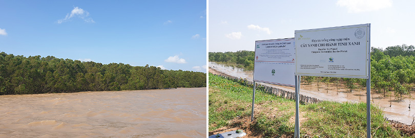 식수 봉사활동을 마친 다음날, 구성원 자원봉사자들은 먼저 베트남의 무분별한 삼림 파괴 현장을 찾아 ‘맹그로브 숲 복원’을 비롯한 환경보호의 필요성을 다시금 확인했다. 또한, SK이노베이션이 지난해 5월 진행한 제1차 맹그로브 묘목 식수지도 방문해 지구온난화 대응을 위한 ‘맹그로브 숲 복원사업’의 중요성을 이해하는 시간을 가졌다.