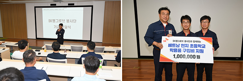 이에 앞서 지난 9월 16일에는 SK 울산CLX에서 자체적으로 조직된 봉사동호회가 베트남 현지 아이들의 학용품 구입을 지원하기 위한 기부금을 전달한 바 있다.