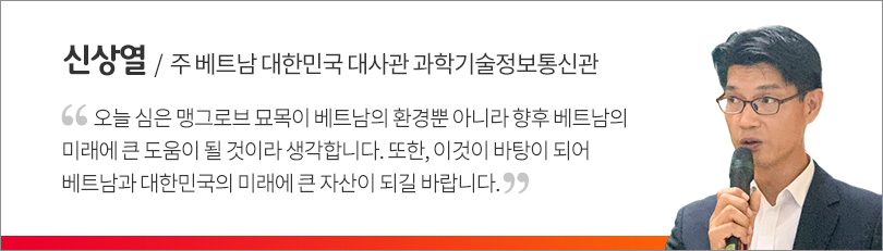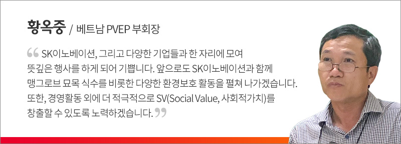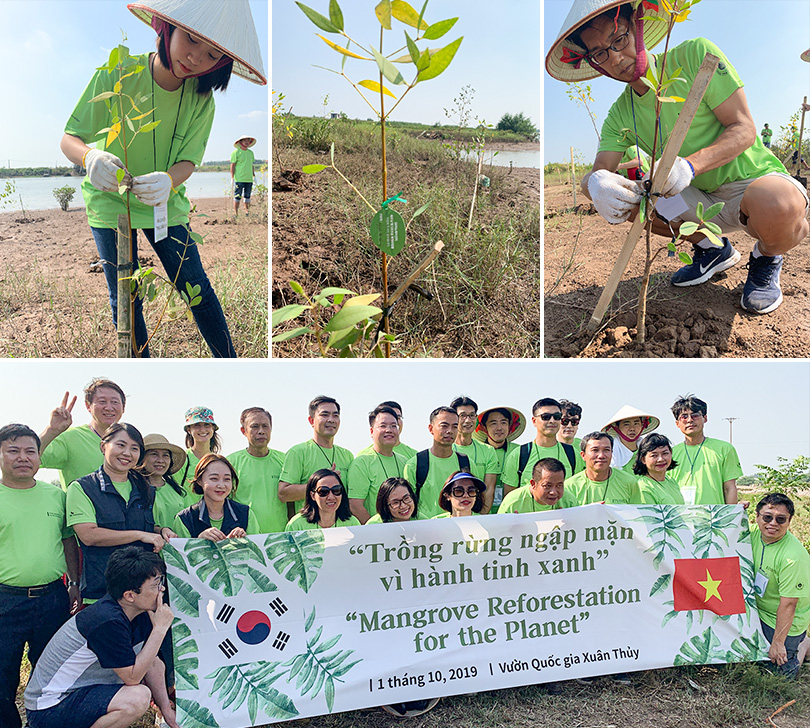 이날 행사가 끝난 뒤, 모든 행사 관계자들은 쑤언투이 국립공원 인근 부지에 맹그로브 묘목 5백여 그루를 심어 그 의미를 더했다. SK이노베이션은 ‘1% 행복나눔기금*‘ 후원 테마 중 하나로 ‘맹그로브 숲 복원사업’을 선정해 지난해 5월부터 ‘베트남 맹그로브 숲 복원 사업’을 추진했으며, 올해 말까지 약 22만㎡ 부지에 7만여 그루의 맹그로브 묘목을 심을 계획이다.