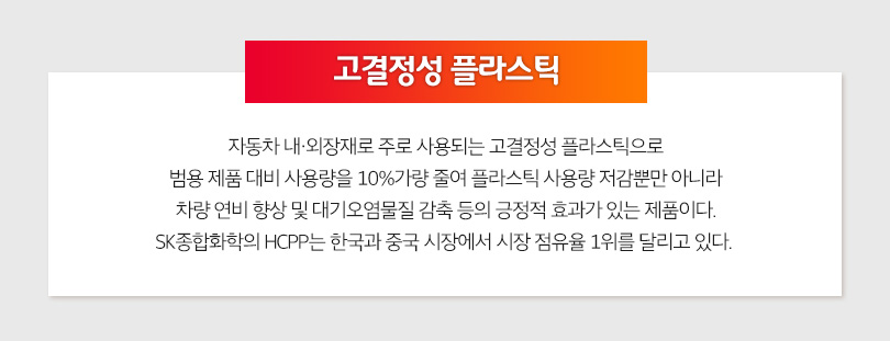 (*)HCPP(하이 크리스탈리니티 프로필렌): 고결정성 플라스틱으로 자동차 내∙외장재 및 각종 전기∙전자부품 등에 사용