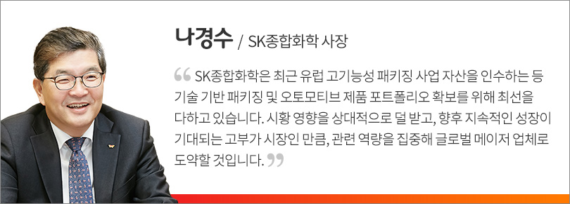 SK종합화학이 차세대 주력사업으로 육성 중인 패키징(Packaging)과 오토모티브(Automotive) 사업을 기반으로 글로벌 시장 공략에 나섰다.