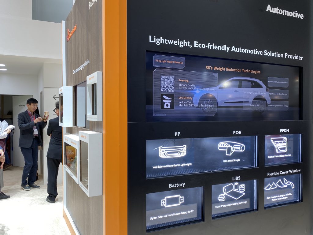 이번 전시에서 SK종합화학은 ▲원스톱(One-stop) 패키징 솔루션, ▲친환경∙초경량 오토모티브 솔루션을 주요 테마로 설정했다.
