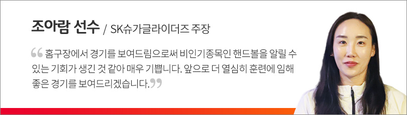 한편, ‘SK슈가글라이더즈’는 광명 지역 내 핸드볼 저변 확대 및 스포츠를 통한 유소년들의 건강한 성장과 발달을 위한 사회적가치 창출 활동을 지속해 오고 있다.