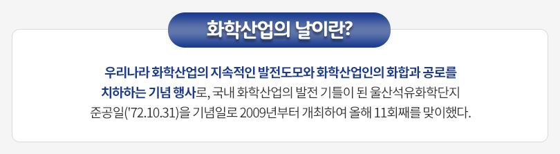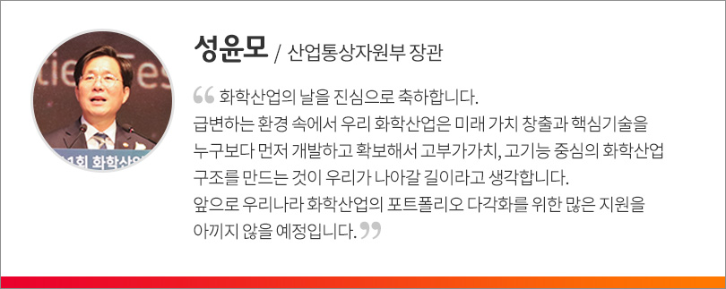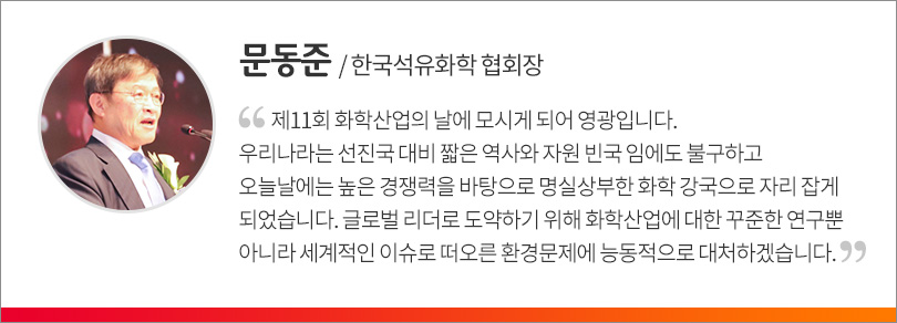 제11회 화학산업의 날 행사는 문동준 한국석유화학협회장의 기념사와 성윤모 산업통상자원부 장관의 축사로 문을 열었다.