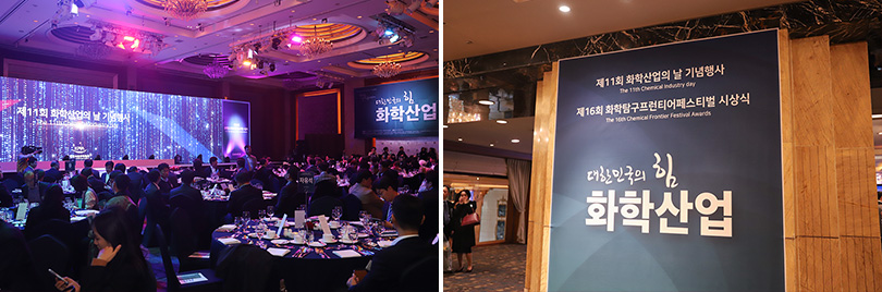 제11회 ‘화학산업의 날’ 기념행사가 오늘(31일) 롯데호텔서울에서 개최됐다. 한국석유화학협회 주관으로 열린 이 날 행사에는 성윤모 산업통상자원부 장관과 SK종합화학을 비롯한 국내 화학사의 임직원들 400여 명이 참석했다.