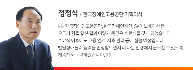 SK이노베이션의 발달장애인 자립 지원 프로그램인 ‘커리어 점프업 클래스(Career Jump-up Class)’ 2기 수료식이 11월 12일, 서울발달장애인훈련센터에서 열렸다.