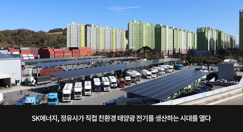SK에너지는 지난 7월부터 부지 넓이가 5만㎡에 달하는 부산 신항 사업소의 화물차 주차면을 활용해 태양광 발전 설비를 구축해왔다. 이는 태양광 발전 설비의 설치면적을 최대로 확보해 발전용량을 극대화하기 위한 것으로, SK에너지는 부산 신항 사업소 한 곳에서만 995.4kwh에 달하는 태양광 발전용량을 확보했다. 발전용량이 3kwh 수준인 주택용 태양광 발전시설과 비교하면 3백배가 넘는 규모다.