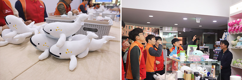 이날 신입사원들은 해양 폐플라스틱으로 제작된 우시산의 다양한 친환경 제품들을 직접 확인하며 봉사활동을 마무리했다. 이번 봉사활동을 통해 만들어진 고래 인형들은 울산 지역 내 소외 아동에게 전달될 예정이다.