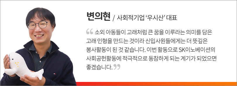 “우리가 만든 고래 인형으로 사랑을 전합니다” – SK에너지 조경목 사장과 신입사원들, 사회적기업 ‘우시산’과 함께 행복을 나누다