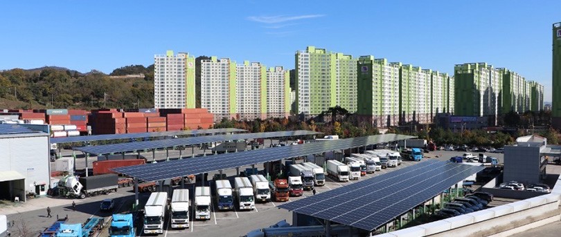 ▲ SK에너지 내트럭하우스 부산 신항 사업소에 설치된 태양광 발전 시설
