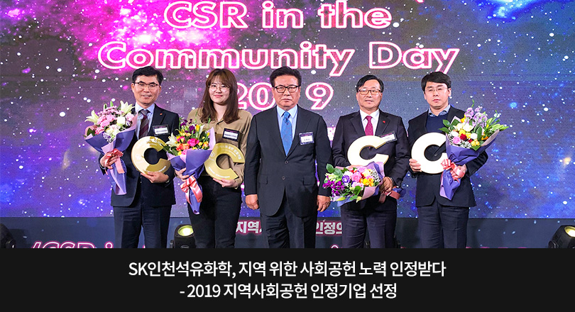 SK인천석유화학은 지난 12월 3일, 보건복지부와 한국사회복지협의회가 개최한 ‘2019 지역사회공헌 인정의 날’ 행사에서 ‘지역사회공헌 인정기업’으로 선정돼 인정패를 수상했다.