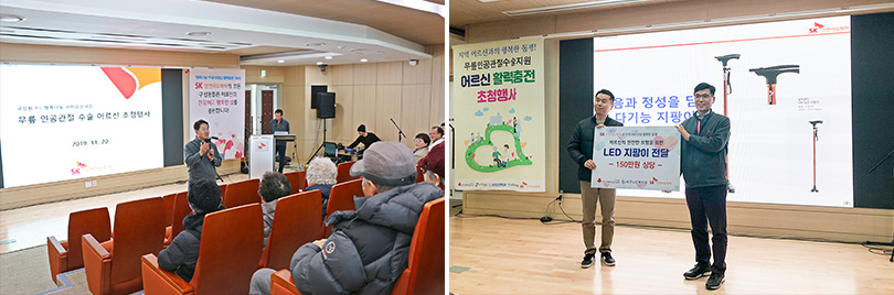 지난 11월 20일에는 SK인천석유화학 내에 위치한 행복드림관에서 무릎인공관절 수술을 지원받은 노인들을 대상으로 수술 이후 불편사항은 없는지 확인하고 활력 있는 생활을 할 수 있도록 지원하고자 ‘활력충전’ 행사를 진행한 바 있다.
