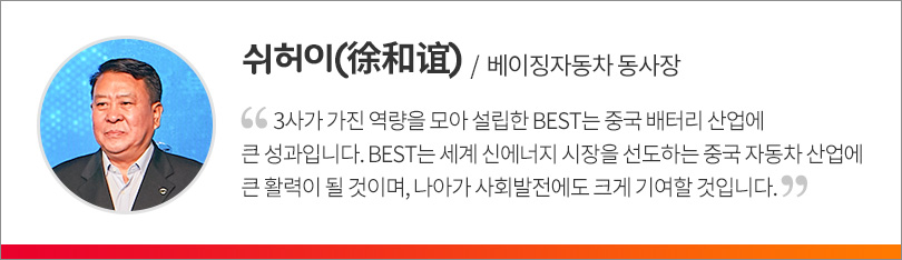 BEST는 SK이노베이션의 차세대 성장 동력인 배터리 사업에서 중국 내 탑 클래스 플레이어*들과의 합작으로 현지에 생산 공장을 건설했다는 데 의미가 깊다. 또한, SK이노베이션의 첫 글로벌 배터리 셀 생산 거점을 확보했다는 점에서 그동안 추진해온 딥체인지 전략의 유의미한 성과라는 평가다.