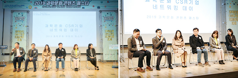 이후 진행된 ‘과학문화 CSR기업 네트워킹 데이’는 과학문화 확산을 위해 민간기업 차원에서 CSR 활동을 하는 우수 기업들이 사례를 공유하고, 지속가능한 과학문화 CSR 기반을 조성하기 위한 의견을 나누는 시간으로 구성됐다. 행사에는 관람객 뿐 아니라 대중소기업 사회공헌·CSR·CSV** 담당자, 사회적 경제 조직 및 비영리기관 관계자 100여 명이 참석했다.