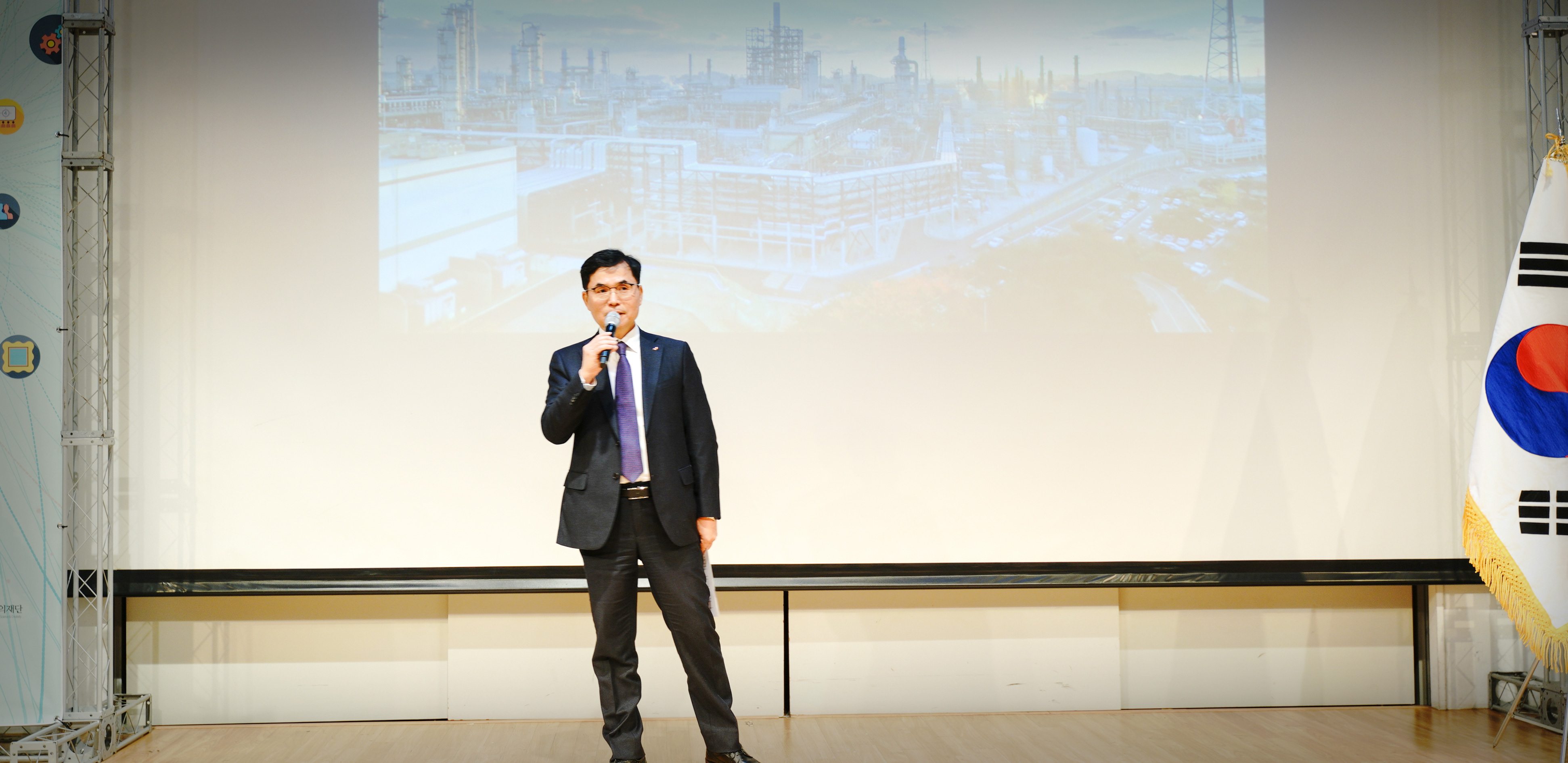 ▲ 2019 과학문화 콘텐츠 페스타에서 CSR 우수 기업 사례를 발표하고 있는 SK인천석유화학 정승우 부장