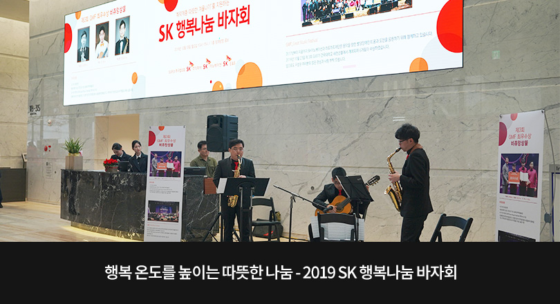 구성원들의 열정과 바자회를 찾아준 이들의 마음이 모여 완성된 ‘2019 SK 행복나눔 바자회.’ 바자회를 통해 한층 높아진 행복의 온도가 소외 이웃들의 겨울에 따스하게 번질 수 있기를 기대한다.