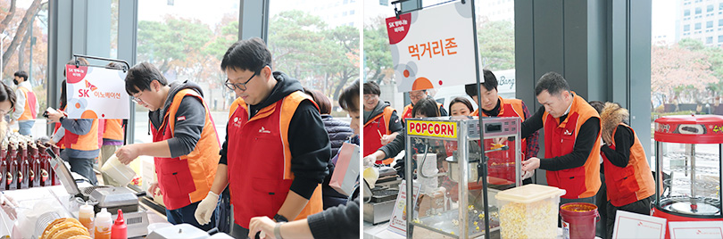 이날 SK서린사옥 1층은 행복나눔을 실천하고자 자원봉사자로 나선 구성원들의 바자회 준비로 이른 아침부터 분주했다. 구성원들은 바자회 개장에 앞서 판매 물품 전시, 음식 조리 등을 시작하며 나눔의 의미를 되새겼다.