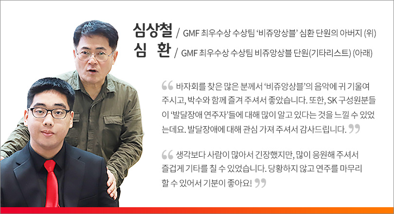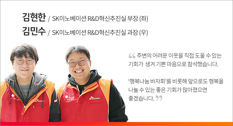 또한 SK이노베이션 김준 총괄사장도 바자회 현장을 직접 방문해 ‘비쥬앙상블’의 특별 공연을 관람한 것은 물론, 자원봉사자로 참여한 구성원들에게 따뜻한 격려의 말을 전하며 행복나눔에 동참했다.