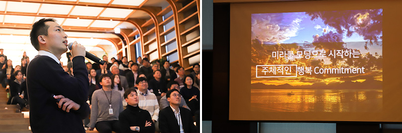 또한 미라클모닝 프로젝트를 바탕으로 사내 구성원들과 독서 클럽을 만들게 되었으며, 그 외에도 다이어트, 사외 강연 등을 할 수 있었다고 덧붙였다. 윤 대리는 마지막으로 ‘행복은 멀리 있지 않다’며 구성원들에게 스스로 계획을 세우고 실천하는 주체적인 삶을 독려했다.