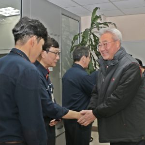 ▲ SK이노베이션 김준 총괄사장이 새해 첫 날 SK인천석유화학을 방문해 구성원들의 노고를 치하하고 있다.