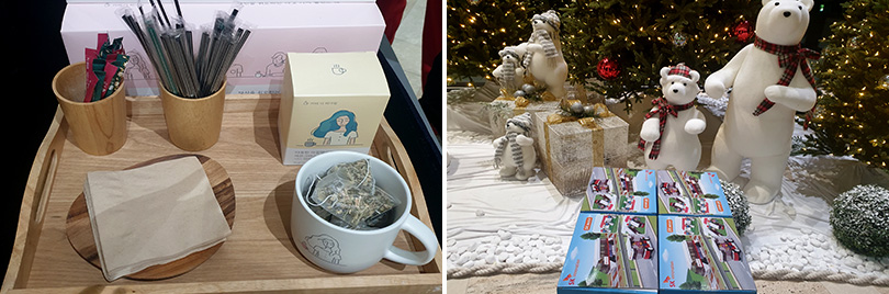 ▲ SK이노베이션이 구성원과 가족들을 위해 준비한 차(좌측)와 한정판 옥스포드 블록(우측)