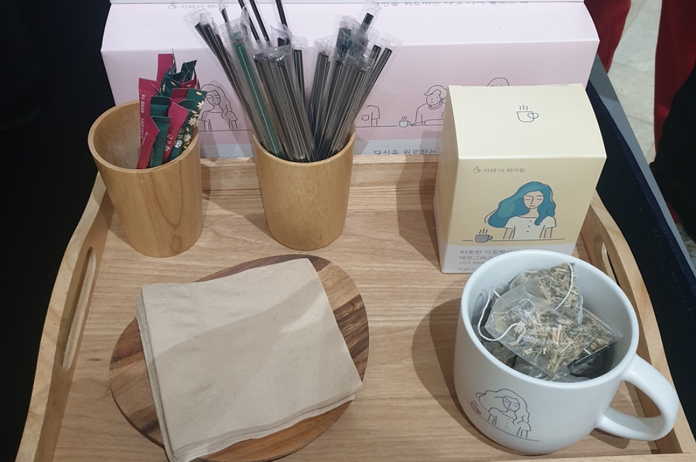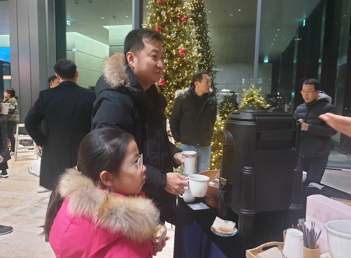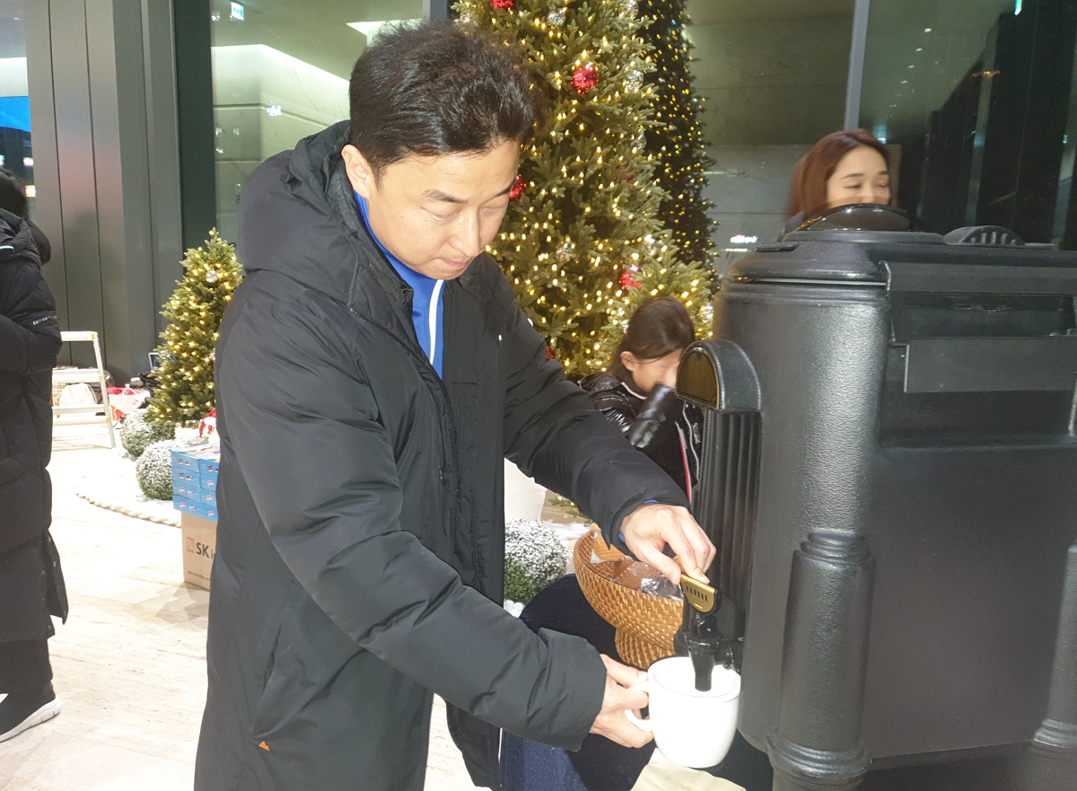 ▲ ‘MOA사회적협동조합’의 커피, 차 등을 마시고 있는 SK이노베이션 계열 구성원 및 가족들