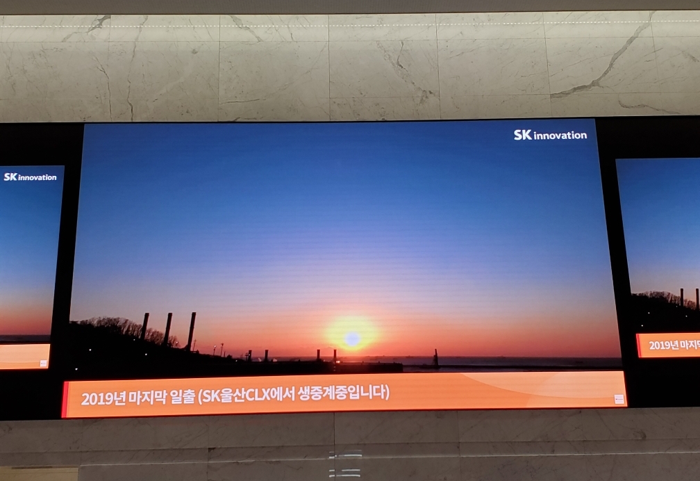 ▲ SK이노베이션이 SK서린빌딩 1층 로비에 있는 대형 미디어월에서 31일 마지막 일출 장면을 생중계하며 새해 첫날 해돋이 중계를 준비하고 있다.