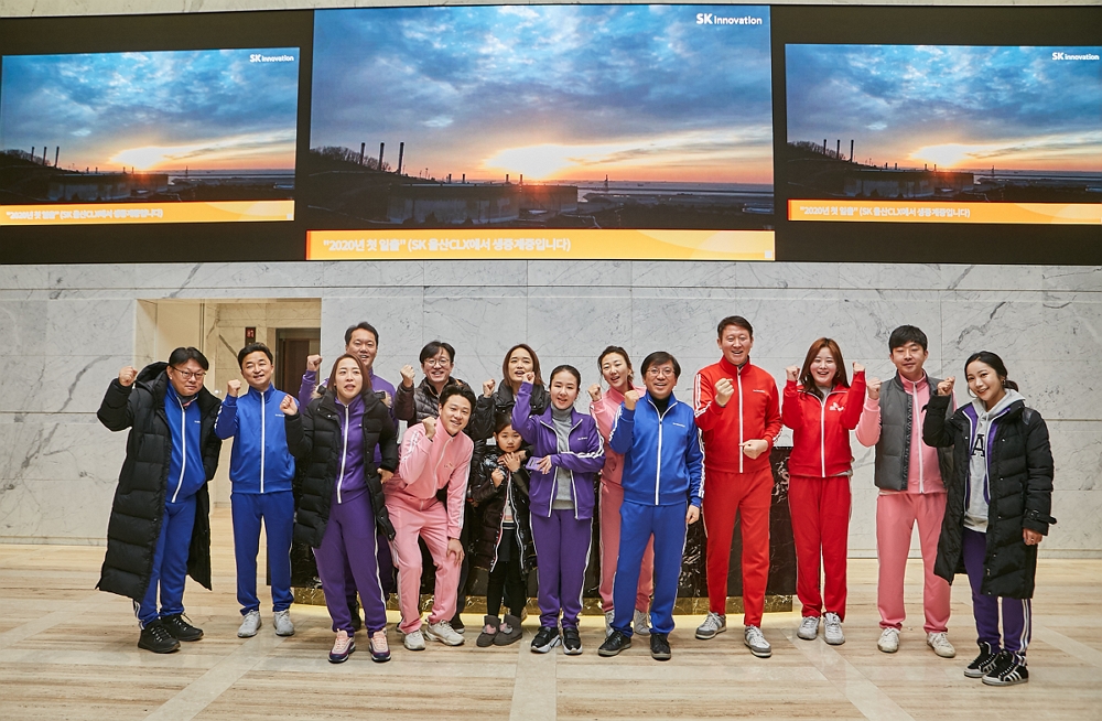 ▲ SK루브리컨츠 차규탁 사장이 구성원들과 함께 일출 생중계를 감상하고 있다.