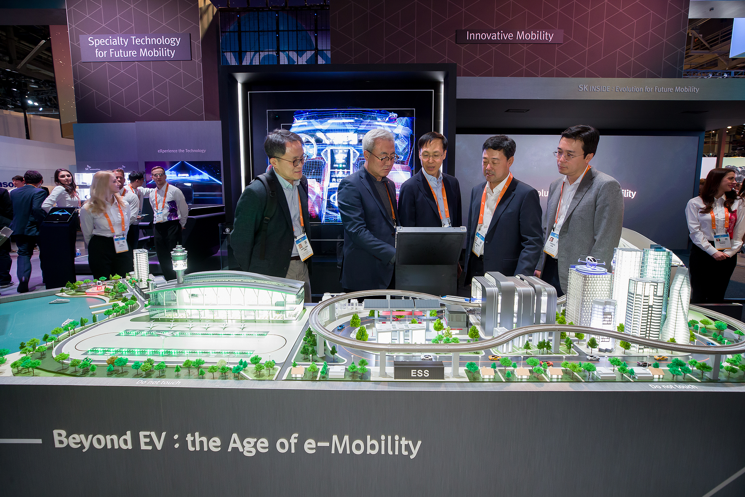 SK이노베이션 김준 총괄사장과 지동섭 배터리 사업대표, 노재석 SKIET 사장, 김철중 전략본부장을 비롯한 전략, 연구개발, 마케팅 임원들은 7일부터 10일까지 열리는 CES2020을 찾았다. SK이노베이션이 미래 성장사업으로 집중하고 있는 E-모빌리티 분야에서 SK이노베이션이 가진 최첨단 기술을 기반으로 한 성장 방향을 모색하기 위해서다.