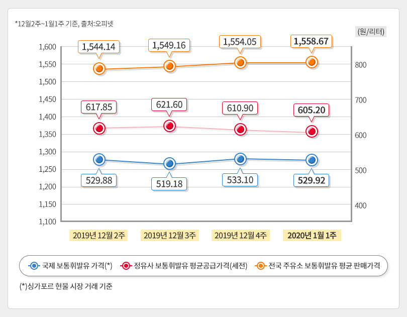 국제유가 및 국내유가 추이 (2020년 1월 1주차) 2020. 01. 10 SK이노베이션 국제유가 및 국내유가 추이 (2020년 1월 1주차) AI 요약 AI 보이스 미디어 키트 이전글 국내유가 국제유가 유가 다음글 연관 콘텐츠 PRESS SOVAC 어벤져스가 직접 전하는 ‘SOVAC 2020’ 2020.09.23 PRESS “이젠 ‘SOVAC 어벤져스’라고 불러 주세요!” – SK이노베이션이 지원하는 사회적기업 및 소셜벤처 11개 社, SOVAC 2020과 함께한다 2020.09.09 ENERGY INSIGHT 英 카본 브리프, “2020년, 역대 최고, 최소한 두 번째 더운 한 해로 기록될 것” 2020.08.13 INNO FOCUS “2020년 4월, VRDS 상업생산을 목표로 달리고 있습니다” – SK에너지 문상필 공정혁신실장 인터뷰 2018.12.03