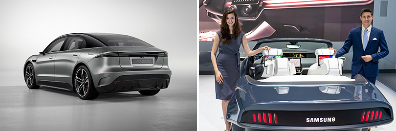 ▲ (좌)소니의 전기차 비전-S, (우)삼성전자의 디지털 콕핏 2020 ***