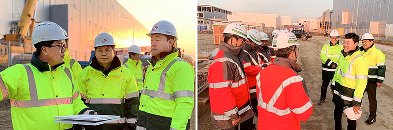 ▲ SK이노베이션 지동섭 배터리 사업 대표가 공사가 진행 중인 헝가리 배터리 2공장 건설 현장에 방문했다.