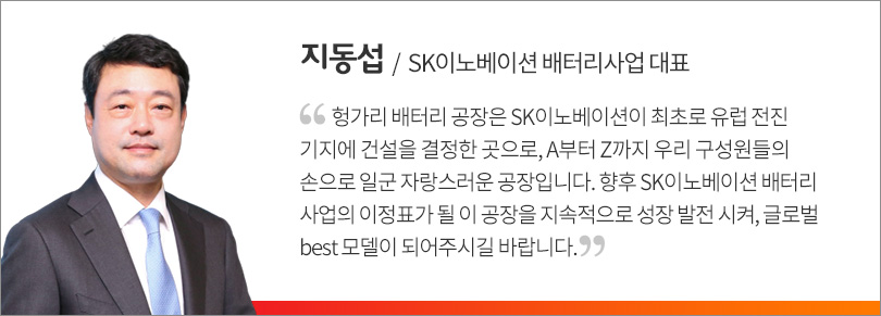 작년 임원 인사를 통해 SK루브리컨츠에서 SK이노베이션 배터리사업 대표로 자리를 옮긴 지동섭 대표가 지난 9일, 헝가리 배터리 공장 현장을 찾았다. 지 대표가 SK이노베이션의 해외 생산 거점 중 가장 먼저 방문한 곳이다. 헝가리 공장은 SK이노베이션 배터리 사업의 유럽내 최초 생산기지일 뿐만 아니라 단독 지분으로 운영하는 최초의 글로벌 현장이기도 하다.