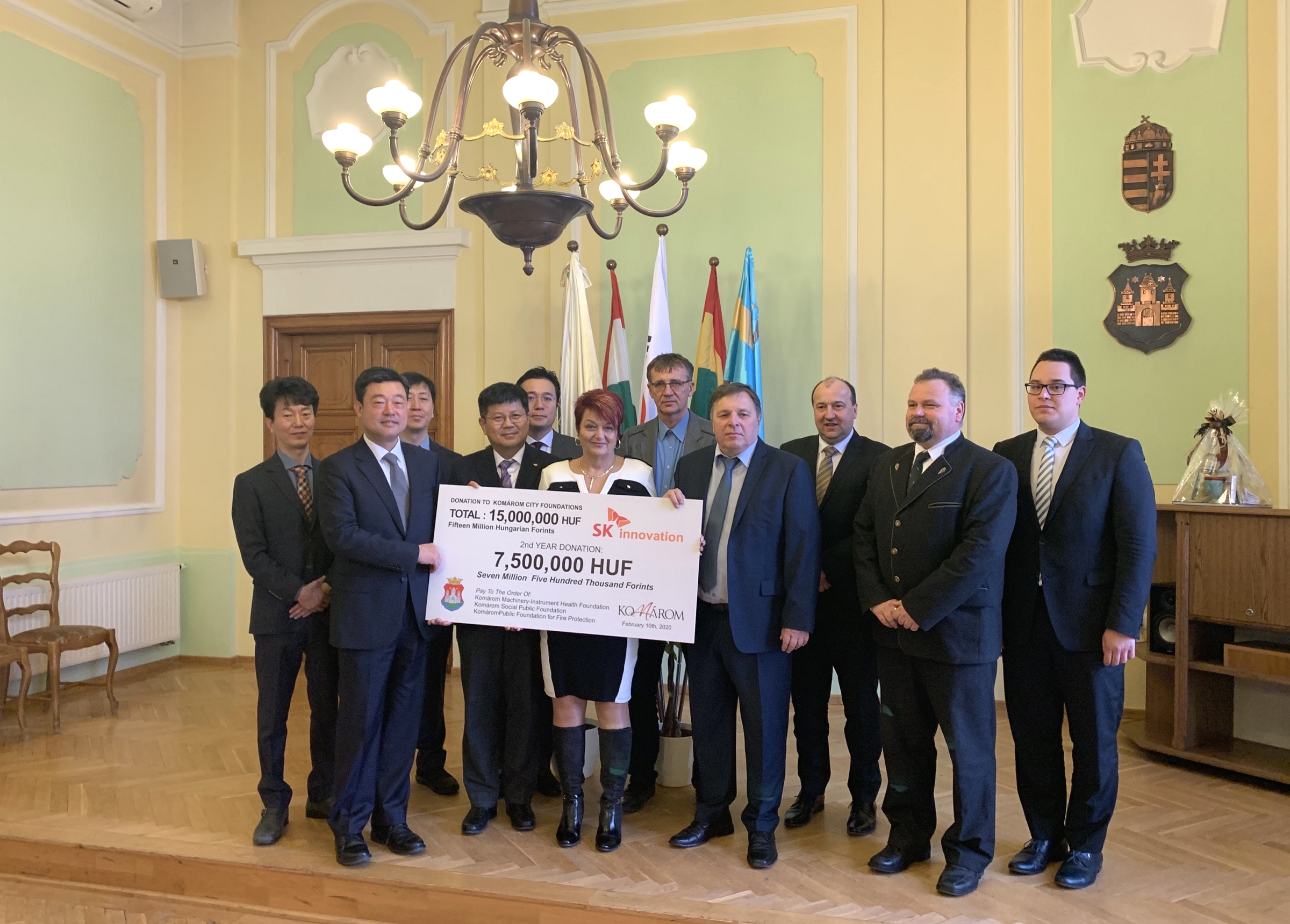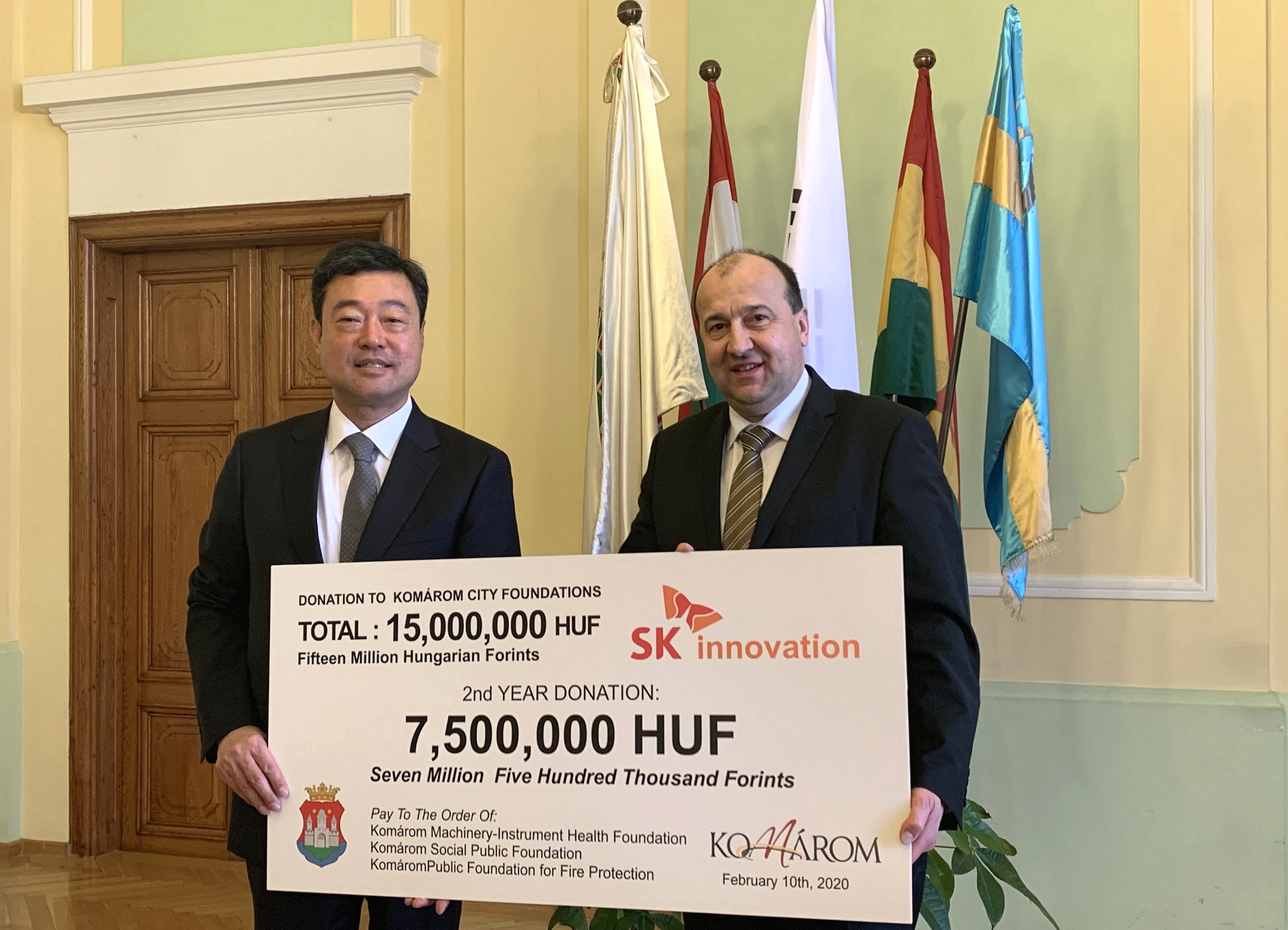 ▲ SK이노베이션은 지난 2월 10일(현지시간), 전기차 배터리 유럽 생산기지가 위치한 헝가리 코마롬시를 찾아 공익 재단에 기부금을 전달했다.