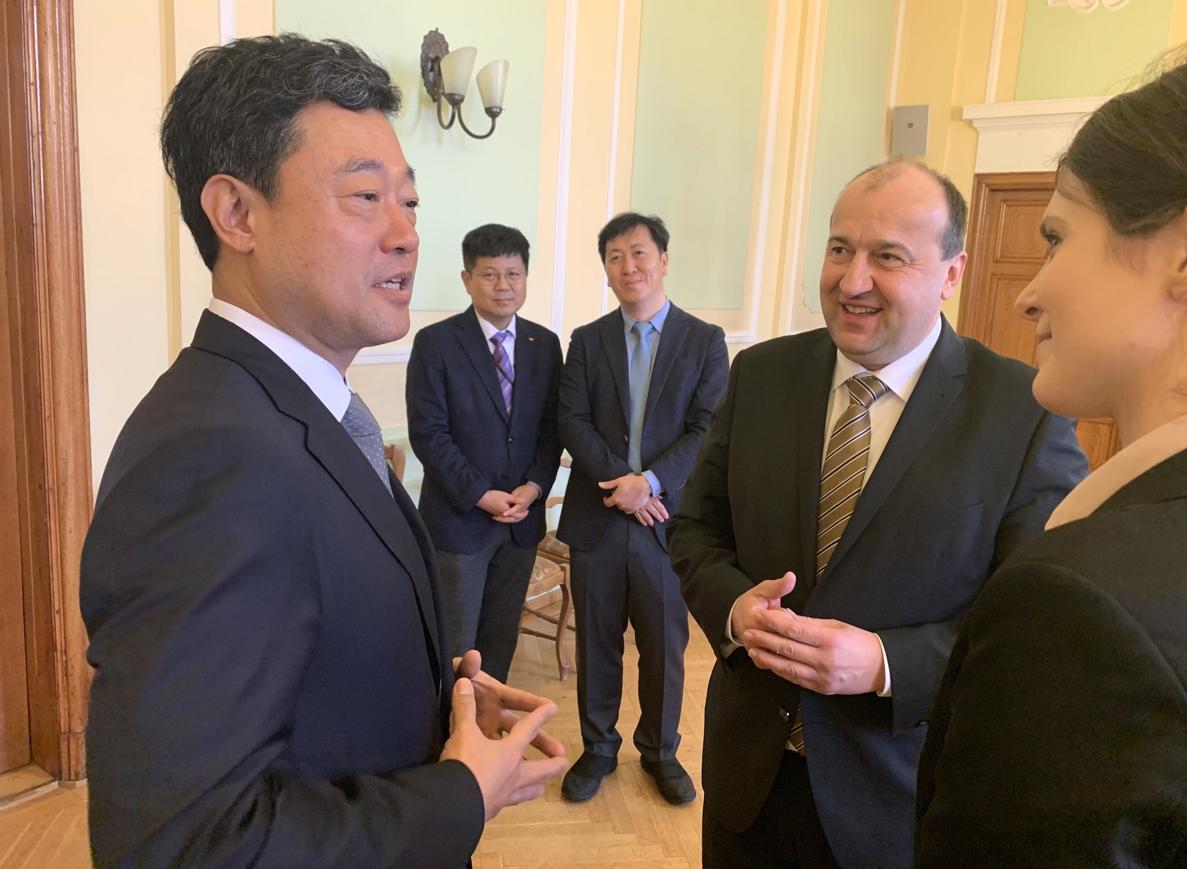 ▲ SK이노베이션 지동섭 배터리 사업 대표(왼쪽)와 아틸라 몰나르 코마롬 시장(오른쪽)