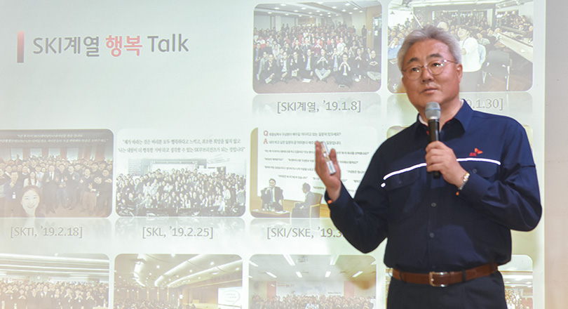 김준 총괄사장은 ‘스스로 만드는 행복, 배려하며 함께 쌓아가는 행복, 긍정의 힘이 이끄는 행복’이라는 세 가지 행복을 얘기하며, SK이노베이션 계열의 행복 추구가 의미 있는 첫 열매를 만드는 한 해가 될 수 있도록 구성원 모두가 ‘나로부터’, ‘함께하며’, ‘긍정적으로’ 참여해 주기를 당부했다.