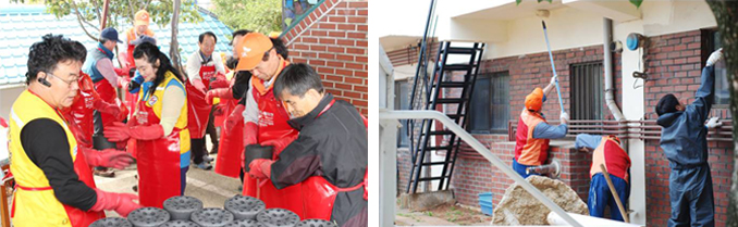 ▲ 지역 복지시설 보수공사 ▲ 매년 11월 실시하는 ‘사랑의 연탄 나누기’