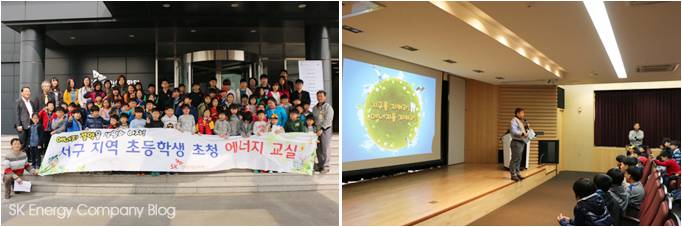 ▲ 정기적으로 지역 초등학생을 초청해 에너지 교실을 열고 있는 SK인천석유화학