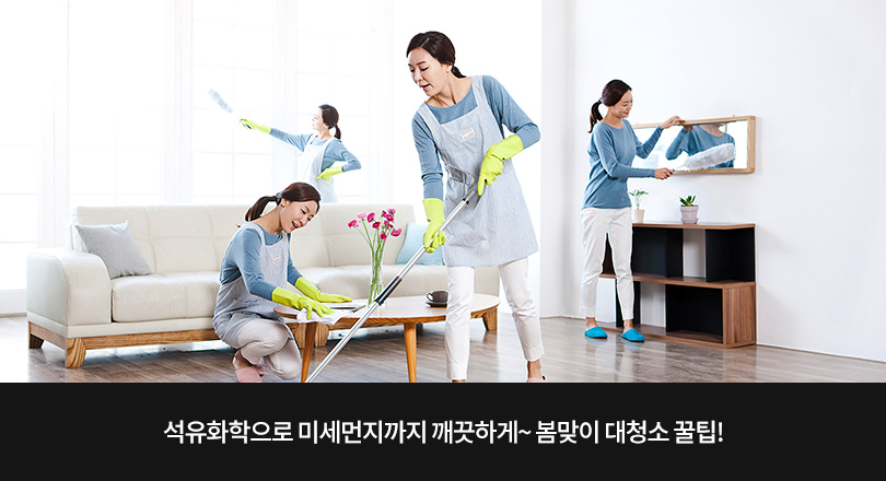 봄이 되면 많은 사람이 겨우내 하지 못한 대청소를 시작한다. 하지만 그동안 실내에 쌓인 묵은 때와 공기 중 미세먼지를 생각하면 청소 전부터 걱정이 앞선다. 효율적으로 청소를 하지 않는다면 공기 중 먼지가 다시 내려앉기 일쑤! 효과적인 봄맞이 대청소 꿀팁과 함께 집안을 더욱 깨끗하게 바꿔주는 석유화학 제품을 소개한다.