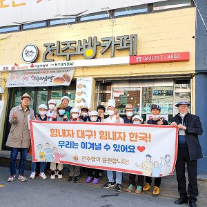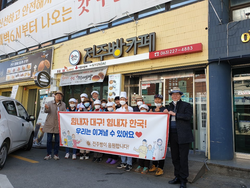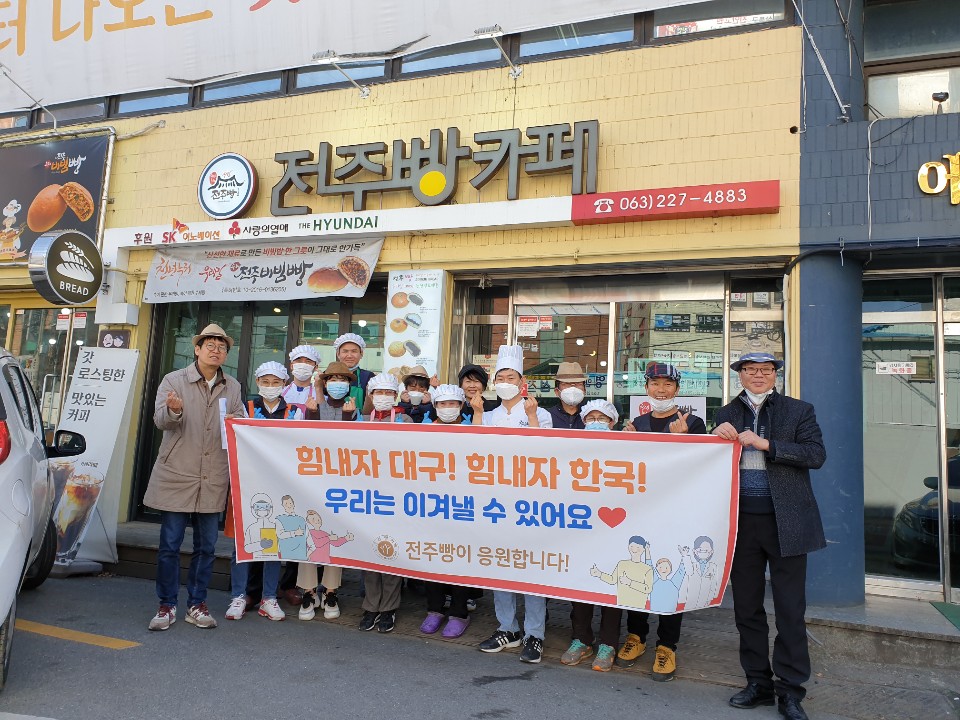 [사진] 사회적기업 전주비빔빵의 든든한 응원 – 매출 90% 급감에도 대구·경북지역 의료진들 위한 ‘전주비빔빵 전달’ 2020. 03. 09 SK이노베이션 [사진] 사회적기업 전주비빔빵의 든든한 응원 – 매출 90% 급감에도 대구·경북지역 의료진들 위한 ‘전주비빔빵 전달’ AI 요약 AI 보이스 ▲ 사회적기업 천년누리에서 운영하는 ‘전주빵카페’는 코로나19로 인해 밤낮 없이 환자 치료에 매진하고 있는 대구, 경북지역 의료진들에게 조금이라도 힘이 되기 위해 2000만원 상당의 제과류를 대한적십자에 전달했다. 미디어 키트 이전글 다음글 연관 콘텐츠 ENERGY INSIGHT 에너지 전쟁 시대, 해외자원개발로 극복한다 2023.03.09 사회적가치 뉴스 PEOPLE & CULTURE ‘사회적기업 어벤져스’, 대구·경북 지역 코로나19 극복 위해 나서다! 2020.03.16 사회적가치 뉴스 PEOPLE & CULTURE “어려울수록 서로 도와야죠” 사회적기업 전주비빔빵의 든든한 응원 – 매출 90% 급감에도 대구·경북지역 의료진들 위한 ‘전주비빔빵 전달’ 2020.03.09 . 욱신욱신 손목 통증, 간단한 손목 운동으로 극뽁 :) 2017.11.03