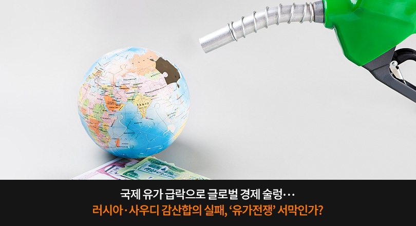 신종 코로나바이러스 (코로나19)의 세계적 대유행 등으로 원유 수요가 급감하고 있는 가운데 러시아와 사우디아라비아(이하 ‘사우디’)가 감산 합의에 실패했다. 이에 따라 국제유가가 1991년 걸프전 이후 가장 큰 폭으로 하락하며, 미국을 비롯한 글로벌 증시가 대폭락하는 등 ‘대혼란’이 빚어졌다.* 전 세계 언론들은 코로나19 우려와 유가 폭락 악재를 ‘더블 펀치’라고 부르며 경기 침체 공포가 커졌다고 평가했다. 시장에서는 이른바 ‘유가 전쟁 (oil price war)’의 서막이 올랐다는 분석이 지배적이다.